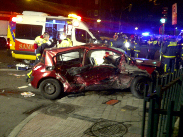 Un vehículo en el que viajaban cuatro jóvenes con edades comprendidas entre 20 y 25 años colisionó frontalmente contra el lateral de otro coche, en el que viajaban otros dos chicos de 30 y 31 años. Según las primeras investigaciones, el primer vehículo podría haberse saltado un semáforo en rojo y colisionar contra otro coche. El conductor embestido salvó su vida porque el otro coche chocó contra la puerta del copiloto, que corrió peor suerte. Un equipo del Samur Protección Civil se desplazó hasta el lugar donde se produjo el accidente donde, pese a intentar reanimar al copiloto que se encontraba en parada cardiorrespiratoria, sólo pudo confirmar su fallecimiento.