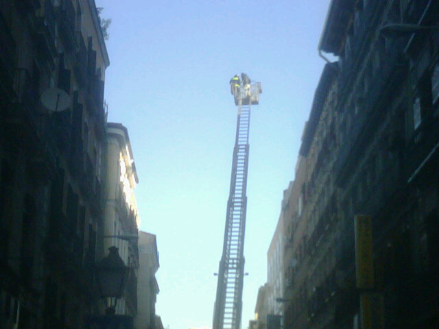 Tras varias dificultades, los Bomberos han conseguido tirar la puerta blindanda abajo y se han encontrado con la vienda, de unos 50 metros cuadrados, totalmente vacía. El humo se ha extendido hasta el ático, donde dos personas han tenido que ser rescatadas por la fachada mediante la escala, debido a la imposibilidad de bajar por las escaleras.
