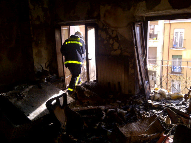 El incendio tuvo lugar a las 9 horas en la quinta planta de un edificio del número 7 de la calle Gutemberg. Las llamas, acompañadas de un intenso humo y fuego, se iniciaron por causas que aún se desconocen en el salón de la vivienda, que ha quedado muy afectado.