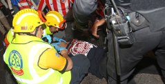 El operativo de SAMUR-Protección Civil ha contado con 40 sanitarios, cuatro ambulancias, varias unidades a pie y un hospital de campaña. Bomberos del Ayuntamiento de Madrid han tenido que realizar varias intervenciones por incendios de vehículos y cabinas de teléfono.