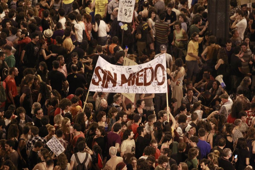 Esta intervención policial desató algunos momentos de tensión en los que se profirieron gritos de ‘Policía asesina’ por parte de los manifestantes. El mismo escenario de tensión se dio ya pasadas las 6.00 de la madrugada, ya en plena Gran Vía, cuando los agentes antidisturbios han introducido a varios detenidos en un furgón policial. Esta actuación generó los aplausos de los presentes hacia los detenidos y más gritos contra la Policía que llegó a cortar el paso de los transeúntes en una de las aceras de la Gran Vía.