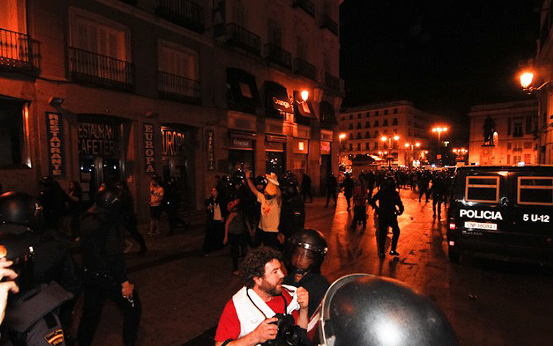 Un herido leve y dos detenidos en el segundo día consecutivo de desalojo de Sol.