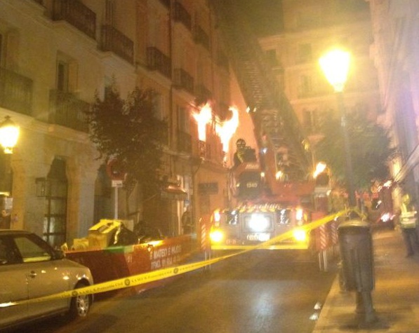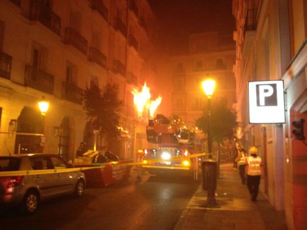 El fuego se ha declarado a alrededor de las 3.30 de la madrugada del domingo, cuando nadie se encontraba en la primera planta. Las llamas han resquebrajado la fachada, alcanzando bastante altura y saliendo por los cuatro balcones. Siete dotaciones de Bomberos del Ayuntamiento de Madrid, con tres bombas, una escala, un tanque y un jefe de guardia, han acudido para sofocarlo.