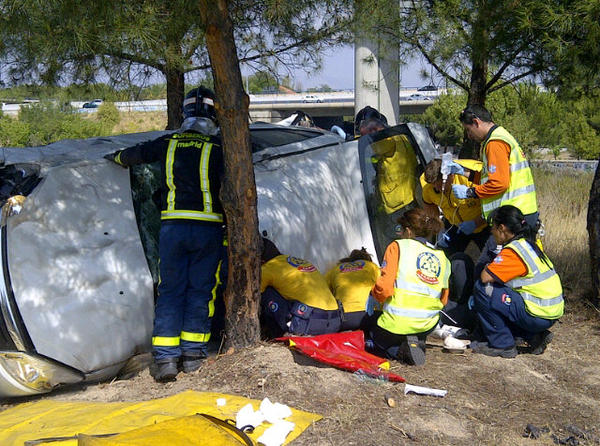 La conductora, herida en estado grave, tuvo que ser rescatada de los amasijos de hierro por los bomberos del Ayuntamiento de Madrid desplazados al lugar del accidente. Presenta fractura de pierna derecha, un brazo roto y posible fractura de pelvis.