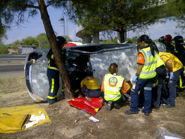 La copiloto consigió salir del turismo por su propio pie. Fué atendida por Samur-Protección Civil, con contusiones en todo el cuerpo que no revestían gravedad. Ambas fueron trasladadas al hospital La Paz. La Guardia Civil de Tráfico se encarga de la investigación del accidente.