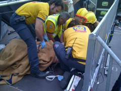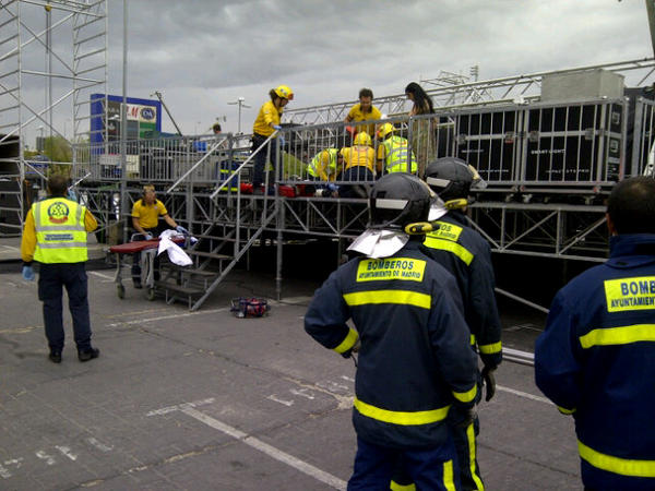 Dos trabajadores heridos tras desprenderse parte de un escenario.