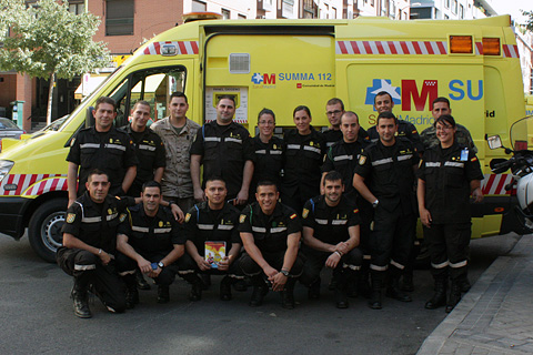 Dentro del plan de formación que sigue el personal destinado en la Unidad Militar de Emergencias, cerca de 20 alumnos del curso de transporte sanitario, pertenecientes al Regimiento de Apoyo a Emergencias (RAEM), han visitado las instalaciones que el Servicio de Urgencia Médica de Madrid, el Summa112, tiene en la capital madrileña.