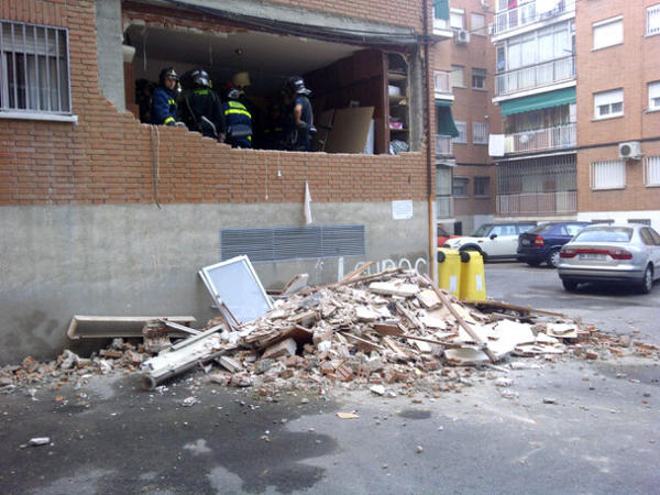 Cinco personas han resultado afectadas con pronóstico menos grave en una explosión de gas registrada esta tarde en una vivienda del distrito de San Blas. Las víctimas han sido trasladadas al hospital de La Paz con quemaduras en las manos, la cara y los brazos, pero no se teme por sus vidas. Como consecuencia de la explosión, la vivienda siniestrada ha perdido parte de su tabiquería que ha caído a la calle, encima de dos vehículos vacíos que estaban aparcados debajo y que han resultado dañados.