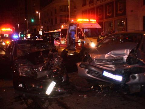 Siete personas de entre 25 y 31 años han resultado heridas en una colisión frontal entre dos vehículos registrada en la Gran Vía, a la altura del número 32. El accidente se ha producido en torno a las 6.30 de la mañana cuando uno de los vehículos ha invadido el carril contrario.