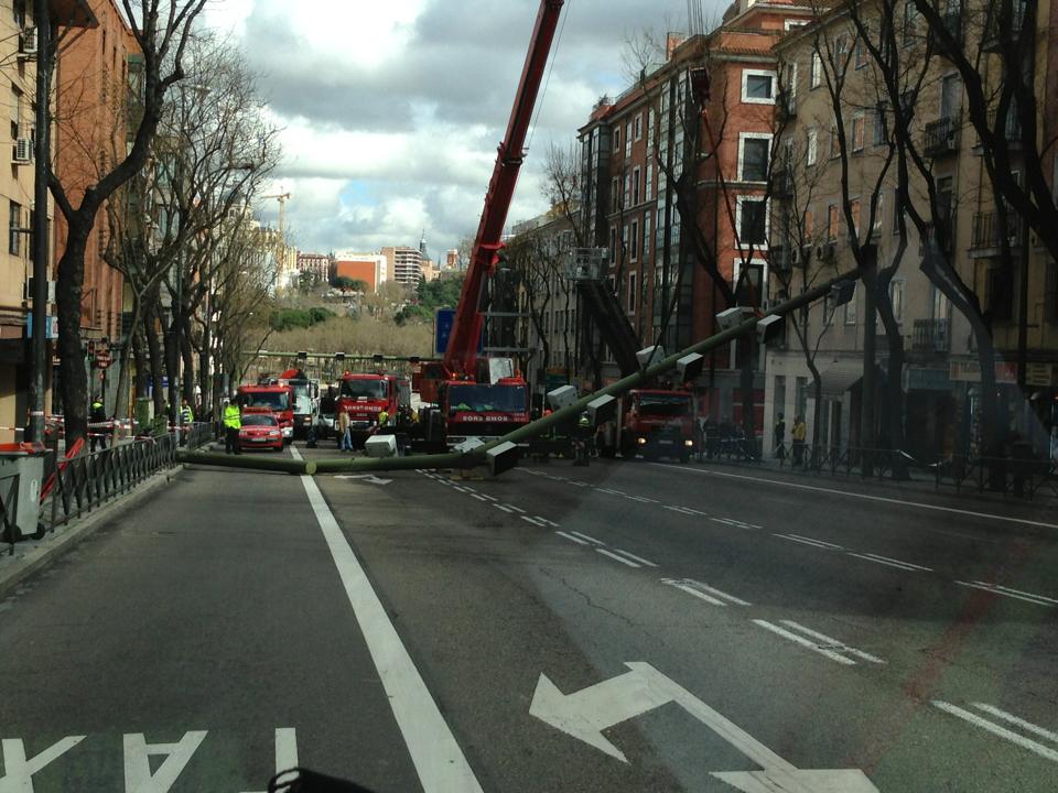 El tráfico ha sufrido los problemas derivados del derribo, por lo que desde el Ayuntamiento se ha pedido que se utilice como camino alternativo la avenida de Portugal o los túneles de la M-30. La Policía Municipal se ha ocupado de regular la circulación en ese punto junto con agentes de movilidad. El trafico permaneció cortado en dicho tramo dos horas y media.