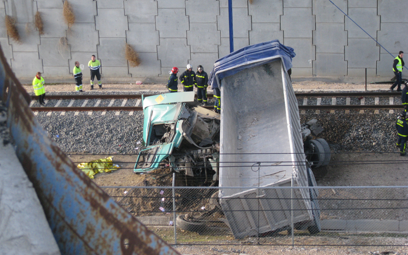 Por causas que ahora investiga la Guardia Civil de Tráfico, el hombre ha perdido el control del vehículo, se ha salido de la vía y se ha precipitado desde el paso elevado hasta las vías del tren. El impacto ha sido tan fuerte que el camión ha roto la catenaria y la cabina ha quedado totalmente destrozada.