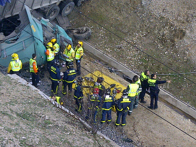Muere un conductor cuyo camión cayó desde la M-50 a las vías del AVE.