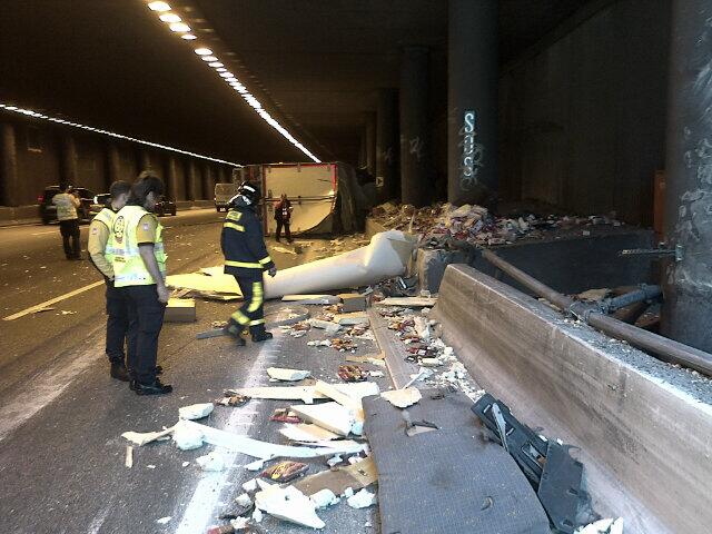 El túnel, que tiene cuatro carriles y un arcén, ha quedado cortado en dos carriles. La Guardia Civil de Tráfico se ha hecho cargo de la investigación para aclarar las causas del accidente.