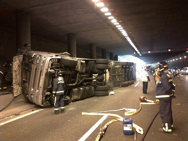 Vuelca un camión de gran tonelaje en uno de los túneles del Pardo.