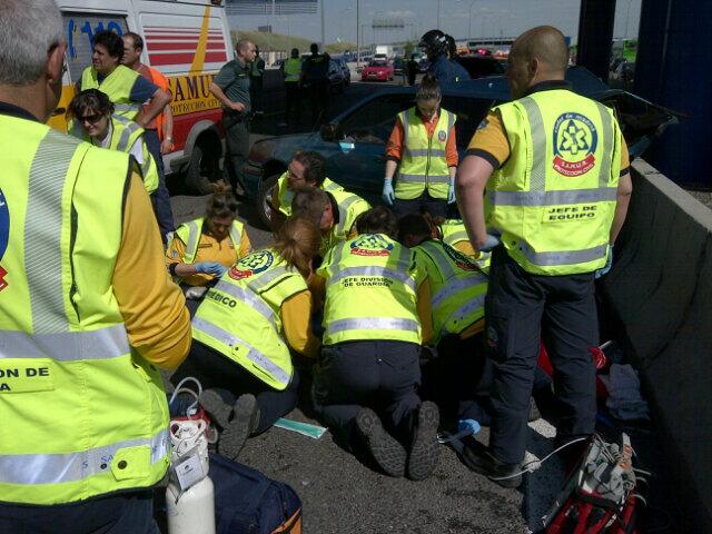 Cuando llegaron los equipos médicos del Samur-Protección Civil, el primer conductor se encontraba policontusionado y en parada cardiorrespiratoria. Tras las maniobras de reanimación, los médicos consiguieron recuperarle en diez minutos. Fue trasladado al Hospital Doce de Octubre de Madrid en estado crítico.