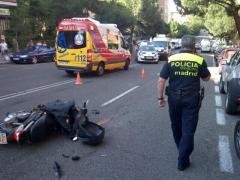 Heridos graves dos jóvenes en un accidente de moto en la calle López de Hoyos.