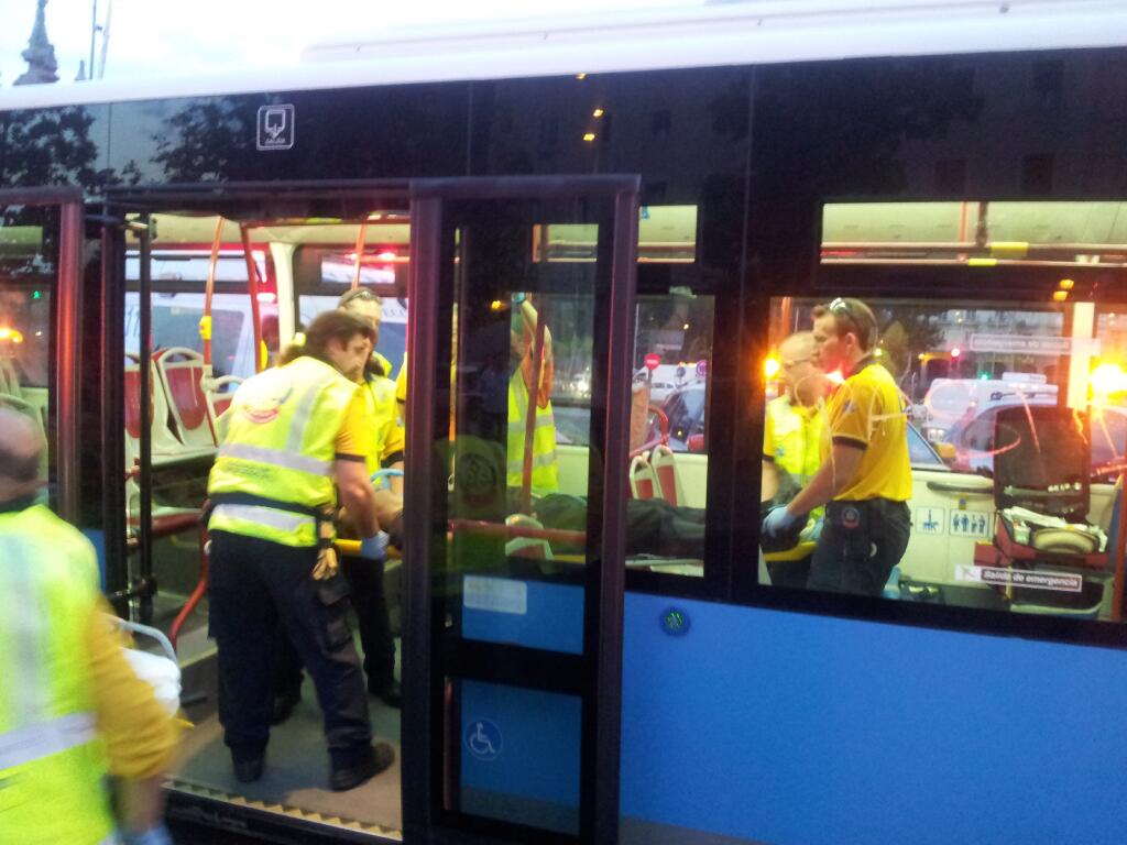 En ese momento, el conductor se ha percatado de que este hombre estaba siendo perseguido por una persona y ha optado por abrir la puerta del autobús y, con él dentro, ha bajado hasta la glorieta de Marqués de Vadillo y ha alertado a los servicios de emergencia. Sanitarios de Samur-Protección Civil personados en el lugar han atendido al hombre en el interior del autobús. El herido presentaba una herida por arma de fuego en el hemitórax izquierdo y, aunque sangraba abundantemente, estaba consciente.