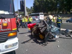 Como consecuencia de la colisión, el turismo quedó partido a la mitad y el hombre falleció en el acto. El cadáver ha quedado atrapado entre los hierros del coche y ha sido liberado por los bomberos del Ayuntamiento de Madrid tras recibir la autorización judicial. Los sanitarios de Samur-Protección Civil comprobaron que el hombre había fallecido por politraumatismos.