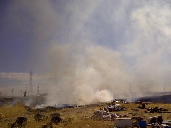 El fuego no ha llegado a afectar ninguna vivienda cercana. El fuego se ha iniciado sobre las 16.15 horas de esta tarde muy cerca de la M-203, en el madrileño distrito de Vicálvaro. Ha sido muy aparatoso, con llamas bastante altas y mucho humo.