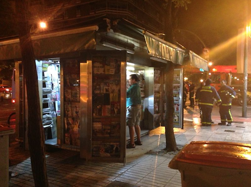 Un autobús de la Empresa Municipal de Transportes (EMT) ha chocado esta noche contra el quiosco de prensa ubicado en la intersección de las calles Narváez y O’Donnell.