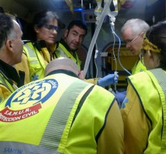 El hombre presentaba una herida en la parte lateral derecha del abdomen, lo que le ha causado una evisceración intestinal. Tras estabilizarle, los sanitarios de Samur-Protección Civil le ha trasladado intubado al Hospital Universitario La Paz.
