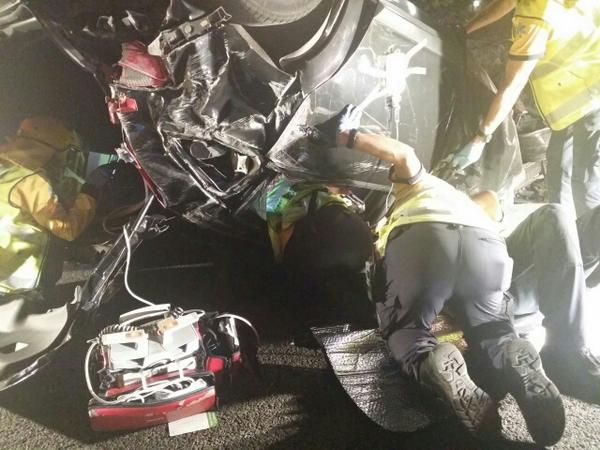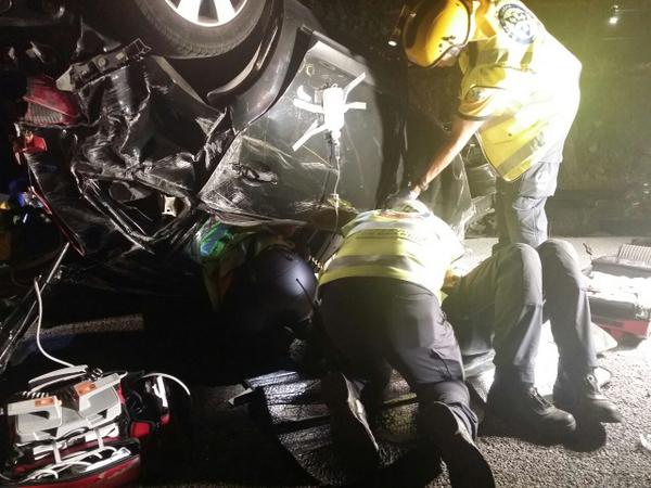 Los Bomberos del Ayuntamiento de Madrid se desplazaron al lugar del suceso y consiguieron rescatarle del interior del vehículo tras más de media hora de trabajos en los que fue necesario el uso de material hidráulico. El joven permaneció consciente durante todo el proceso.