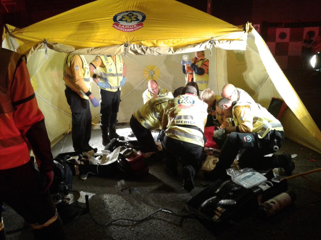 El motorista quedó tendido en la calzada en parada cardiorrespiratoria, de la que trataron de sacarle con maniobras de resucitación cardiopulmonar primero dos transeúntes y, después, sanitarios de Samur-Protección Civil.
