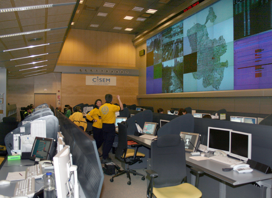 En la sede de 112 Comunidad de Madrid se utiliza para la integración de comunicaciones su matriz de conmutación y su CTI. En el CISEM, Samur-PC dispone de cuatro puestos de operación dependientes de un servidor diferente al del 112. De esta forma la Central de comunicaciones dispone de un BACK UP en tiempo real pudiéndose hacer cargo indistintamente de la operativa del servicio las dos centrales. Además en CISEM se utiliza un moderno sistema digital de integración de comunicaciones denominado VAS. Ambos sistemas tienen una gran capacidad y versatilidad, permitiendo manejar fácilmente las 20 líneas telefónicas y los 2 diferentes sistemas de comunicaciones de que disponemos, con gran sencillez y eficiencia. Entre la Central de Comunicaciones y la Base Central de Samur-Protección Civil existe un enlace de fibra óptica y dos routers, de modo que, aunque separadas en la práctica, las dos redes existentes funcionan como una sola.