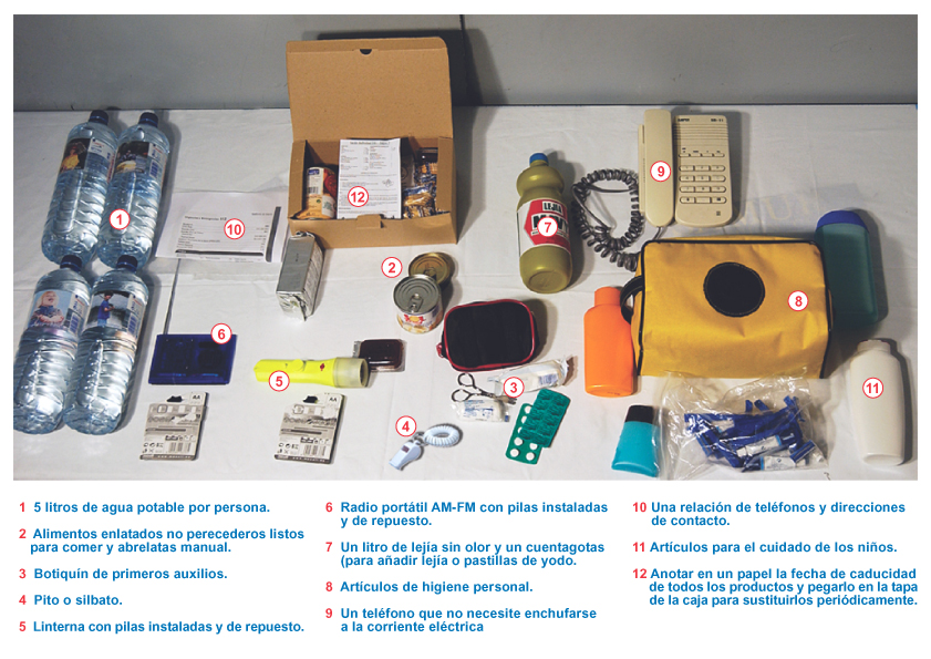Estos artículos deben estar en un contenedor o caja especialreservado para emergencias dentro de un armario, almacén o despensa. Todos los habitantes del hogar deben saber que estos artículos son para usarse exclusivamente en casos de emergencia.