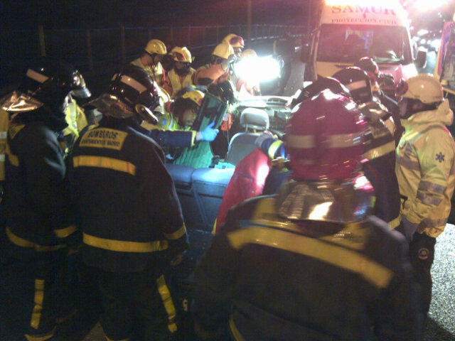 La acompañante es un mujer de unos 50 años, que pudo ser rescatada por los bomberos tras media hora de maniobras. Presentaba una fractura de fémur y traumatismo cervical siendo trasladada grave al Hospital 12 de Octubre. La última herida es una joven de 21 años, con un traumatismo abdominal por el que ha sido trasladada al Hospital de La Princesa en estado leve.