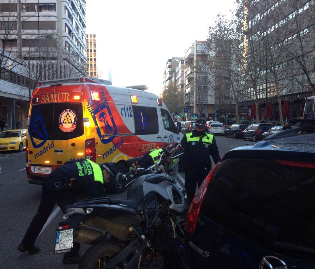 El accidente se ha producido a la altura del número 15 de la calle Orense cuando el motorista se ha golpeado con la parte del conductor del turismo que iba delante. El varón ha quedado tendido en la calzada, muy agitado y con un bajo nivel de consciencia.