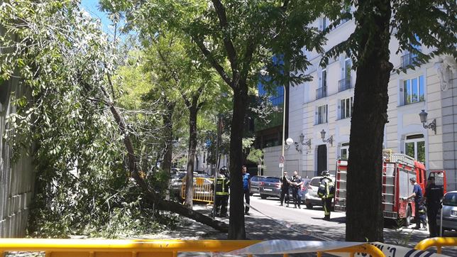 Cae una gigantesca rama de un árbol junto al Tribunal Supremo.