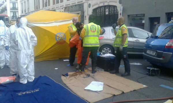 Tras el aviso recibido sobre las 17.45 horas desde dicha sede, situada en la primera planta del número 8 de la calle Fernando VI, llamaron a los equipos de emergencia para indicar que había llegado se ha activado preventivamente el protocolo NRBQ para emergencias nucleares, radiológicas, bacteriológicas y químicas, y hasta el lugar han llegado técnicos de Samur-Protección Civil, agentes Tedax y Bomberos equipados con trajes especiales, mascarillas y bombonas de oxígeno.