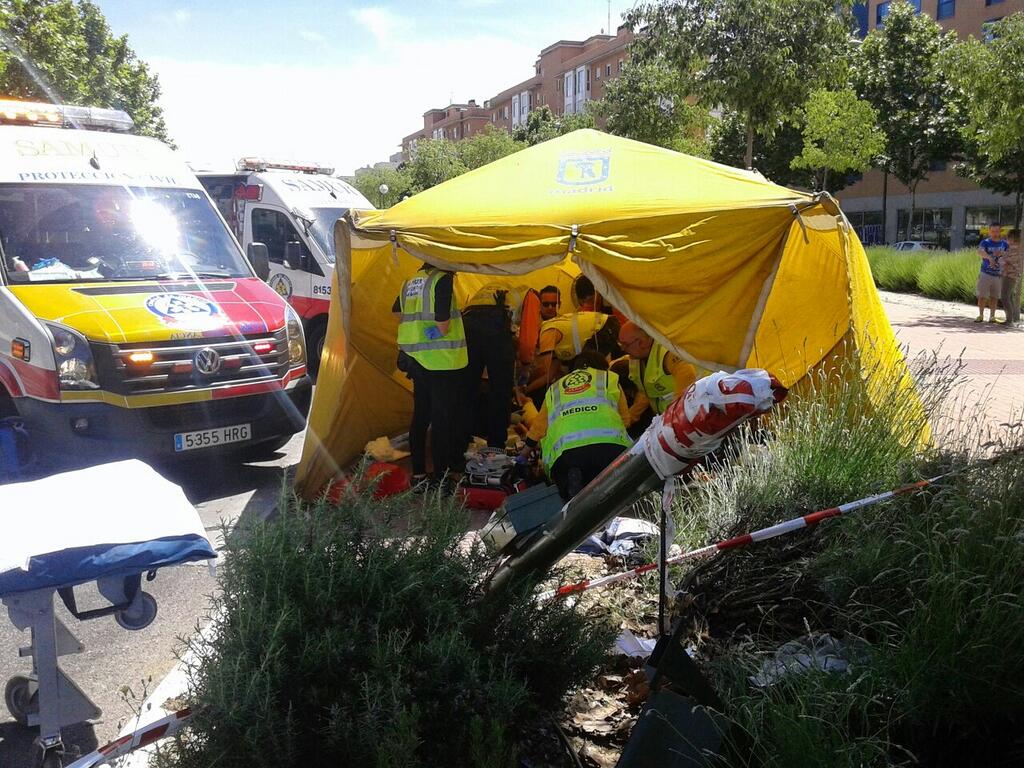 Debido a la gravedad de las lesiones, han acudido al lugar cinco unidades de Samur-Protección Civil. Tras estabilizarle en el lugar, le han trasladado al Hospital Universitario 12 de Octubre, donde ha ingresado en estado muy grave.