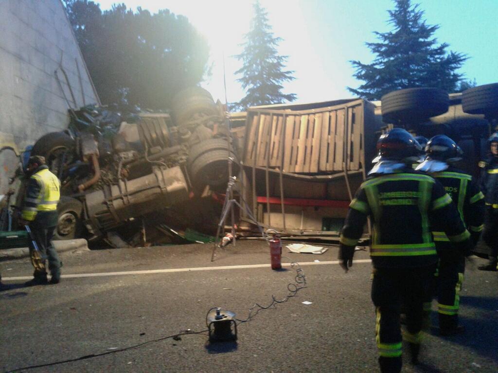 Fallece el conductor de un camión volcado en el acceso a la A-1.