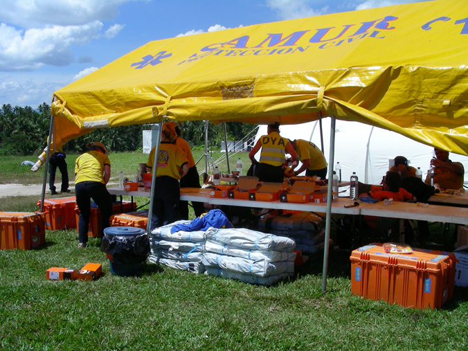 El campamento contó con todo lo necesario para que la expedición permaneciera esos días en unas condiciones óptimas de trabajo y descanso. Igualmente tanto médicos, enfermeros y técnicos se desplazaron diariamente, bien para colaborar con los sanitarios indonesios en sus propios centros de salud o para colaborar en el montaje de estructuras provisionales de campaña junto a colegios destruidos por el terremoto.