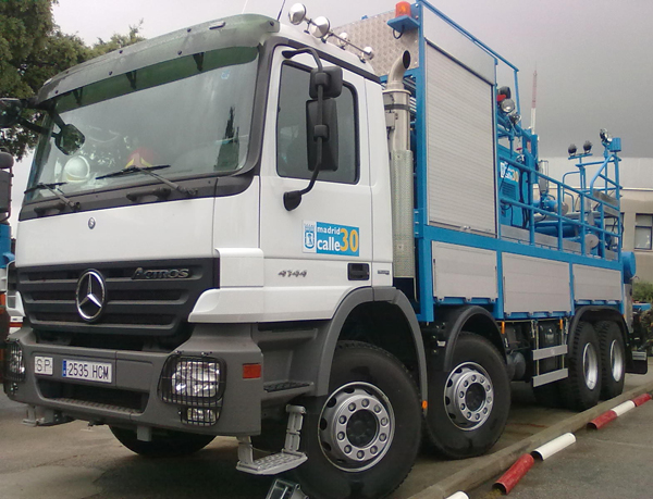 Descripción: vehículo destinado al bombeo de gran cantidad de caudal de agua. Sus intervenciones se centran en inundaciones de los túneles en episodios de grandes lluvias donde los colectores cercanos no dan a basto y se producen grandes balsas de agua en la calzada.